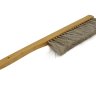 Высококачественная щетка-сметка изготовлена из мягкой натуральной конской щетины, расположенной в три ряда и деревянной ручки, покрытой лаком. С помощью данной щетки очень легко сметать пчел с сотов и стен улья не повреждая их, в таком ворсе пчелки не запутываются. Также данная щетка может быть использована при уборке дна улья.